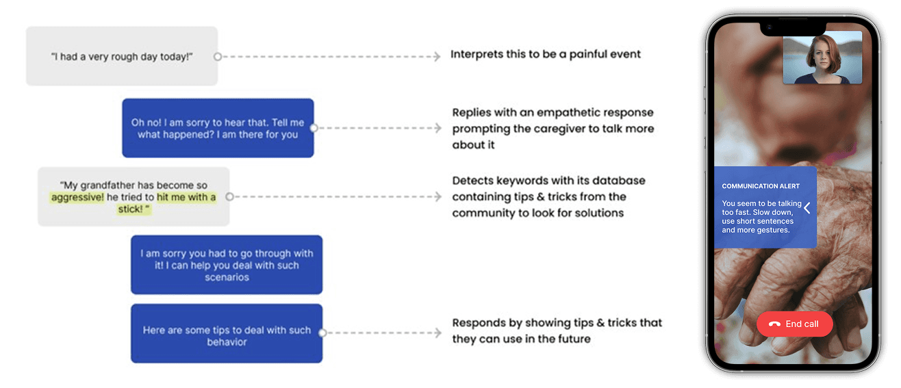 This feature enhances video calls by guiding caregivers to slow down their speech and use gestures, ensuring clear and effective communication. This helps prevent misunderstandings and frustration, making interactions more engaging and reassuring for Alzheimer's patients while strengthening their connection with caregivers.