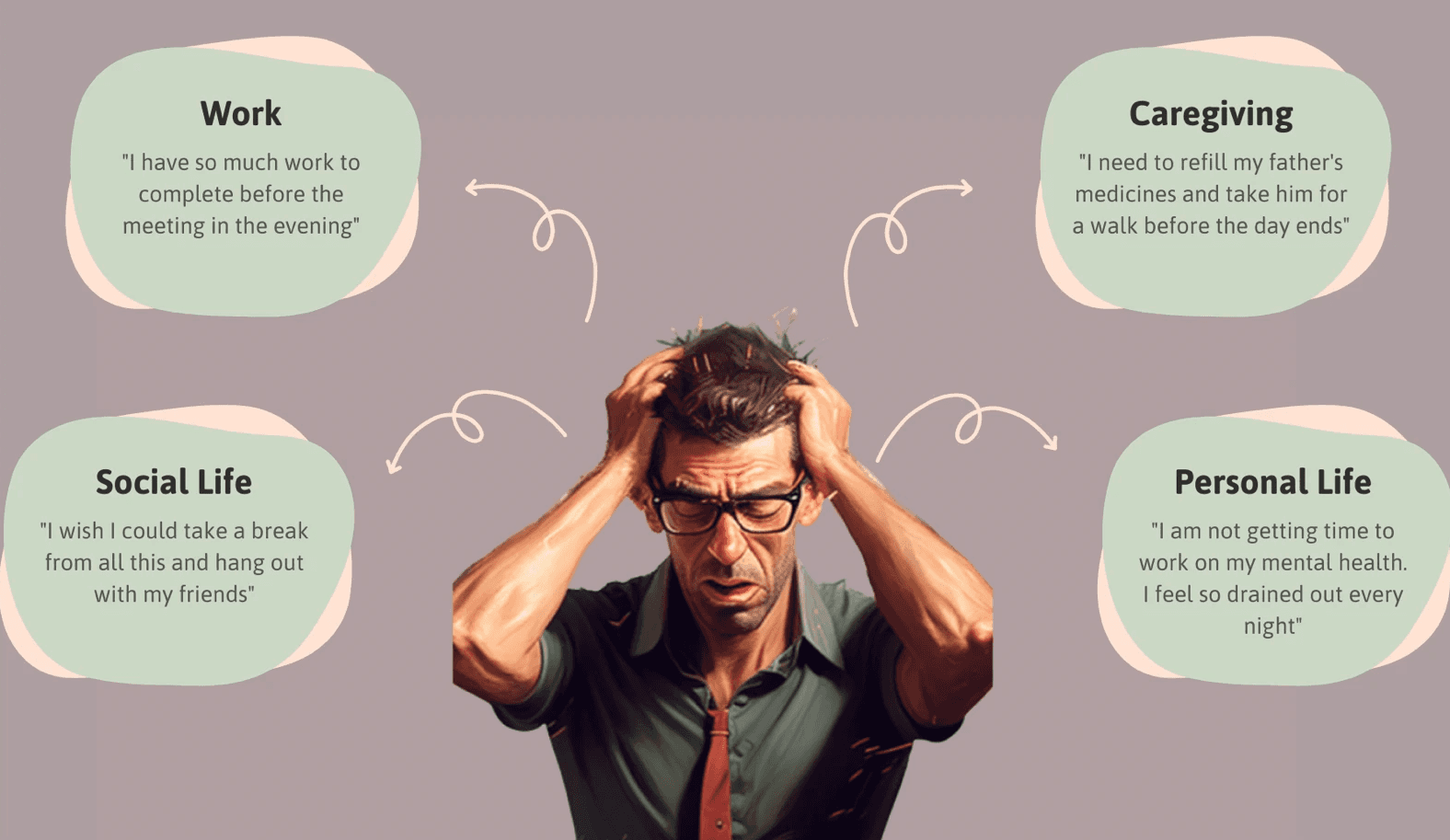 Tension between professional responsibilities and caregiving obligations.