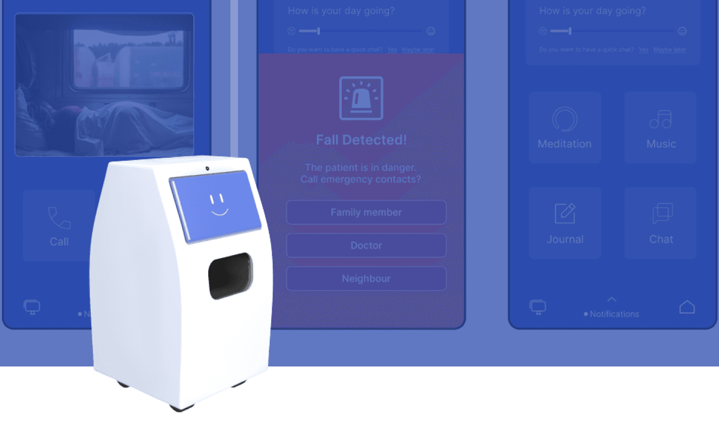 Ambient patient monitoring focused on safety and routine adherence.