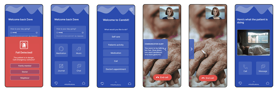 Following synthesis across interviews, journey maps, and expert reviews, I designed CareBit as a conceptual caregiving support system. Its purpose was to test insights—not to act as a final product.